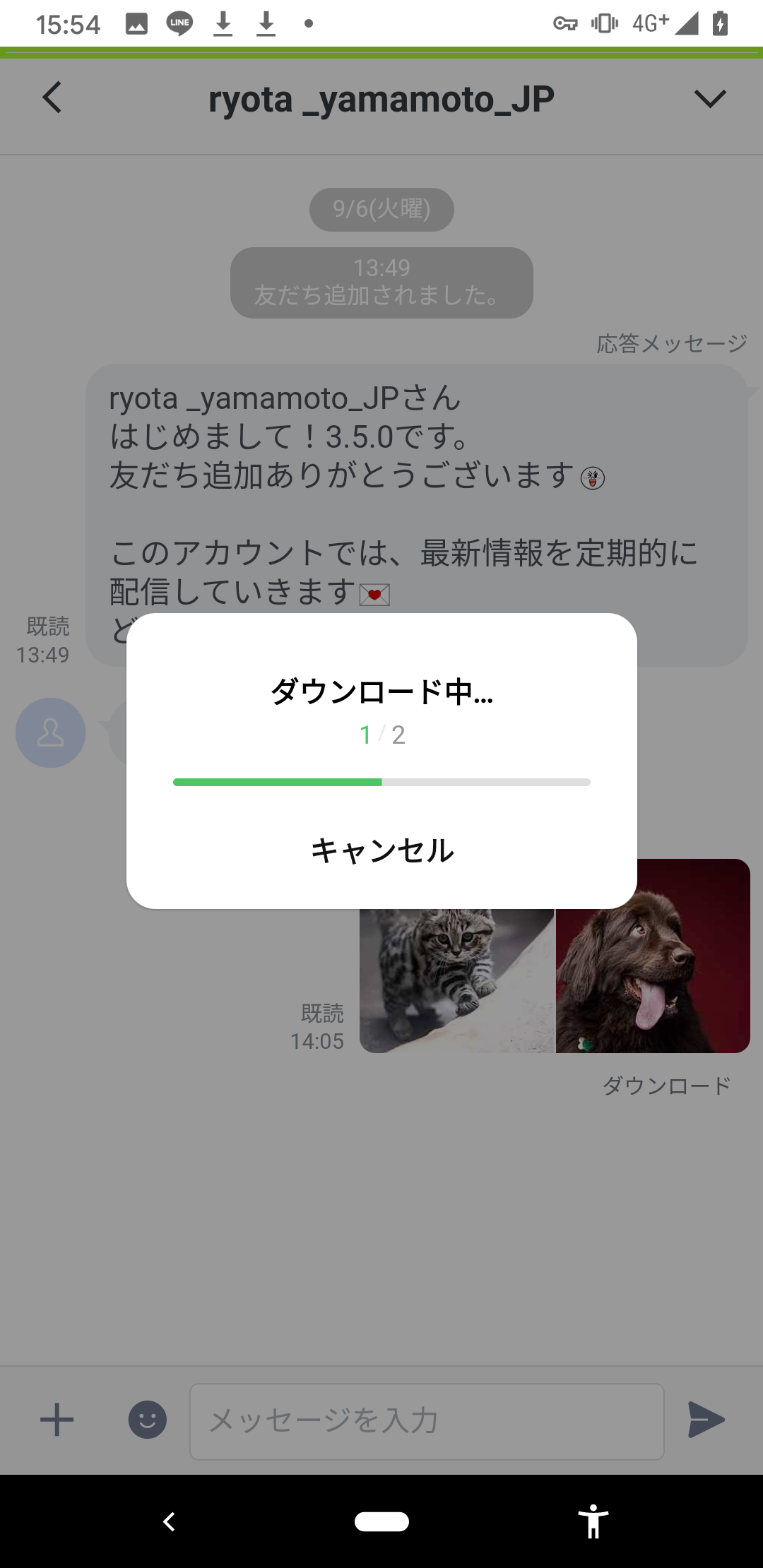 LINE公式アカウントアプリで個人ユーザーとのチャット画面はLINEアプリと同様にメッセージだけでなく画像や動画の送受信ができます。