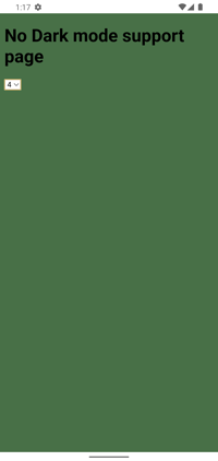 setAlgorithmicDarkeningAllowed により setForceDarkStrategy で DARK_STRATEGY_USER_AGENT_DARKENING_ONLY が設定された時と同じ表示となります。