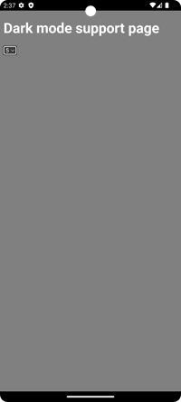先ほどのウェブサイトにおいてダークモードの場合に backgroundColor が Gray となるようにダークテーマ定義を追加した際の挙動です。DARK_STRATEGY_WEB_THEME_DARKENING_ONLY と DARK_STRATEGY_PREFER_WEB_THEME_OVER_USER_AGENT_DARKENING の場合はダークテーマ表示され、DARK_STRATEGY_USER_AGENT_DARKENING_ONLY の場合は先ほどと同じ ブラウザ による色の書き換えが起きることがわかります。