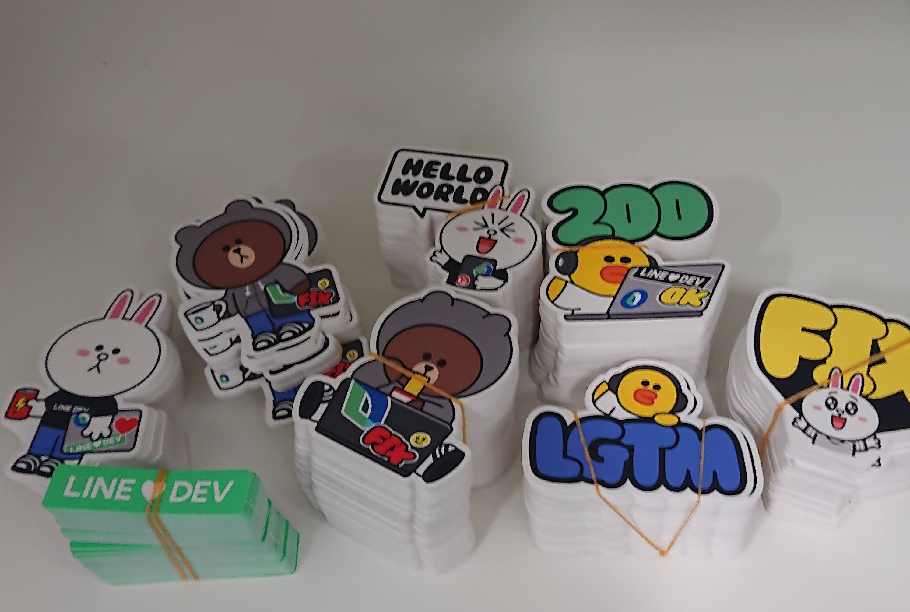 まずLINEブースについてですが、基本的にはLINEもオープンソースエコシステムの一員であることを示すため、LINEの文化を伝えることを目的に開発者向けデザインのキャラクターステッカーや開発文化が記されたLINE Engineering Culture Bookの配布を行いました。
