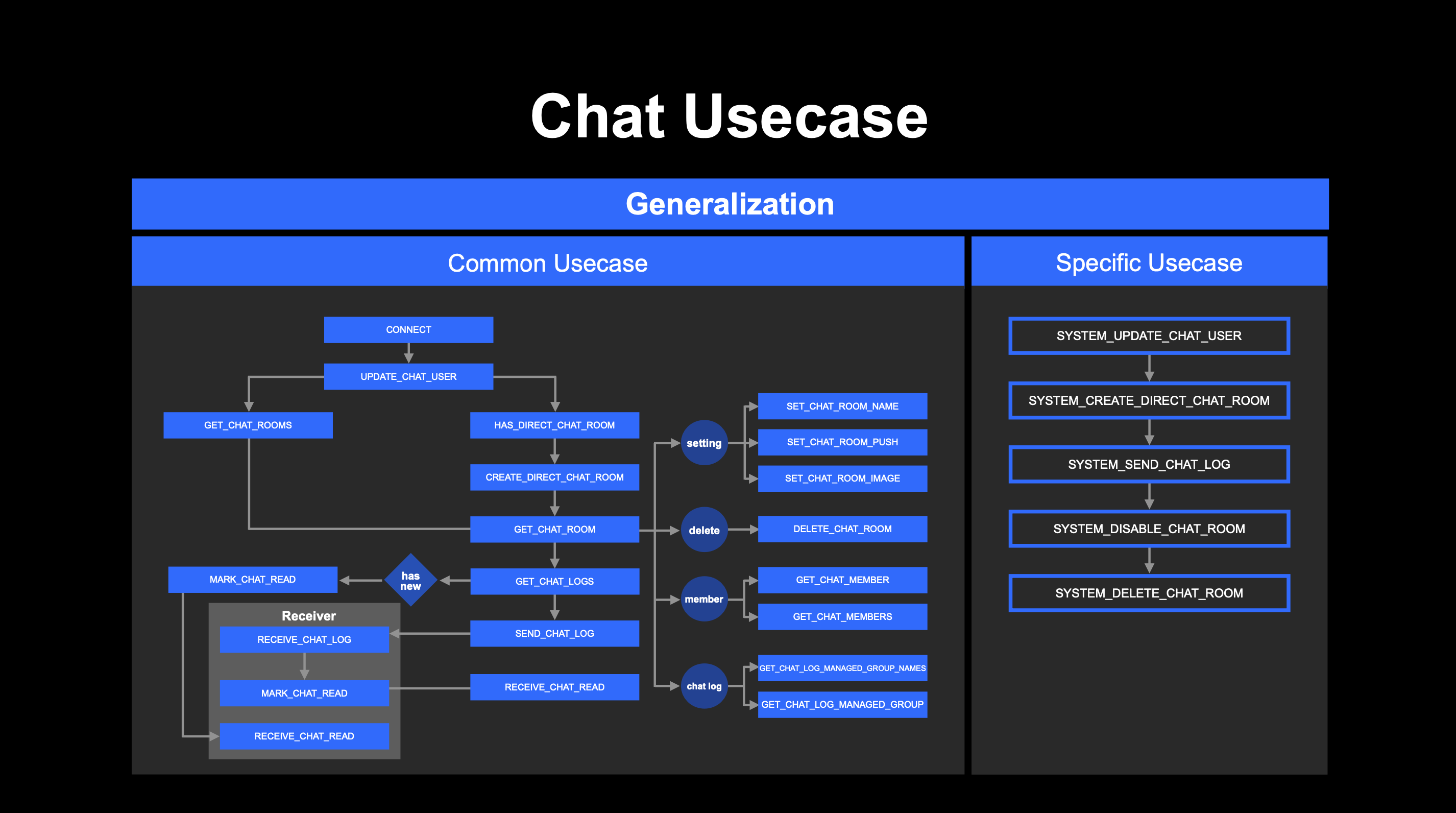 MessagingHub는 외부 시스템에서 전송한 메시지를 사용자에게 전송하는 것뿐 아니라 사용자 간에 커뮤니케이션할 수 있는 채팅 인터페이스도 제공합니다. messaging-hub-sdk 모듈의 다음 과제는 채팅 인터페이스를 구현하고 각 클라이언트에서 손쉽게 사용할 수 있도록 모범 사례를 만드는 것입니다.