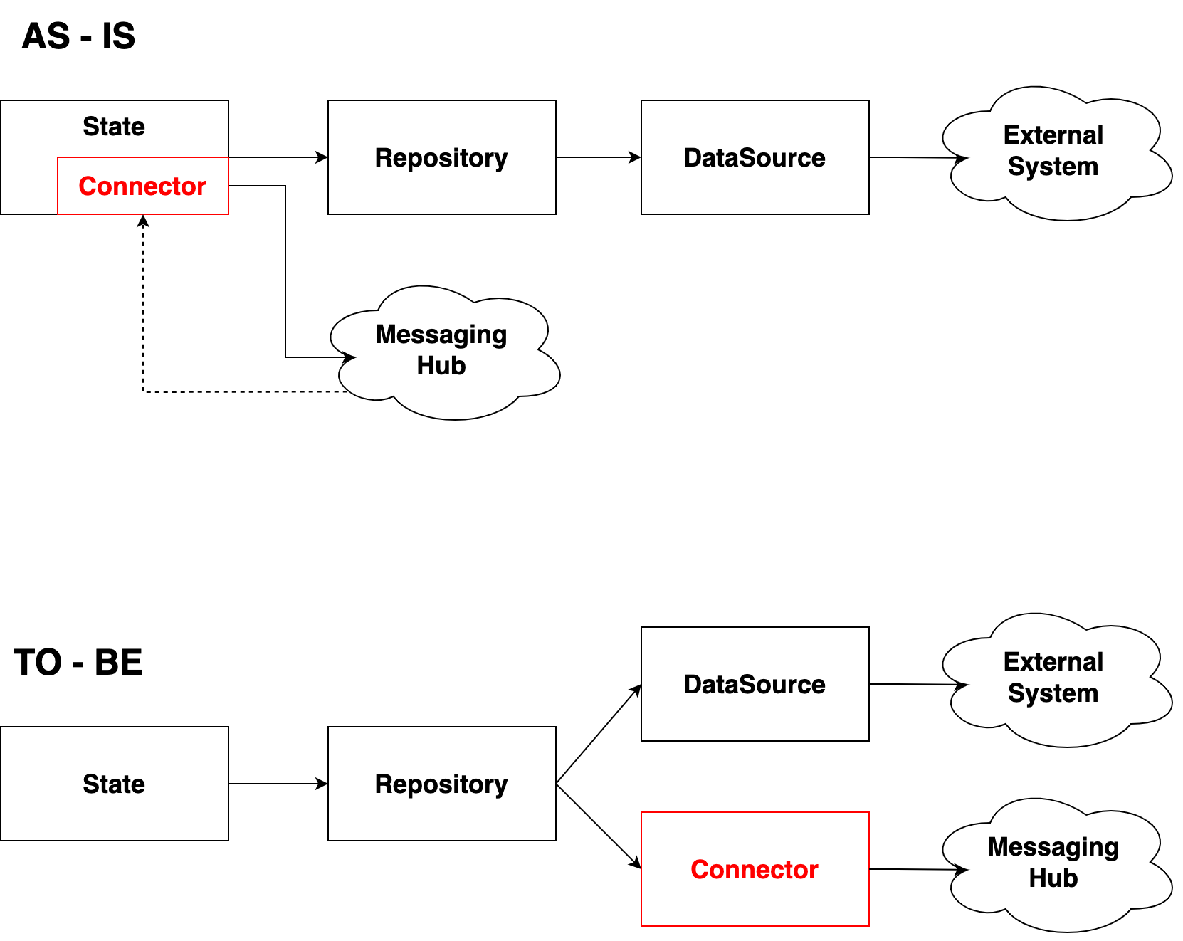 아래는 DriverApp을 코드 레벨에서 살펴본 그림입니다. AS-IS를 보면 UI 표시를 담당하는 상태 클래스에서 Repository를 통해 인증 토큰을 발급받아 웹소켓으로 연결하고 있는 것을 알 수 있는데요. UI 계층과 도메인 계층 간 데이터 모델과 로직 구분이 명확하지 않아 코드 정리가 필요하다고 판단했습니다(아래 그림에서 Repository는 Android 개발 권장 아키텍처 가이드라인 중 데이터 레이어로 이해하시면 좋을 것 같습니다).