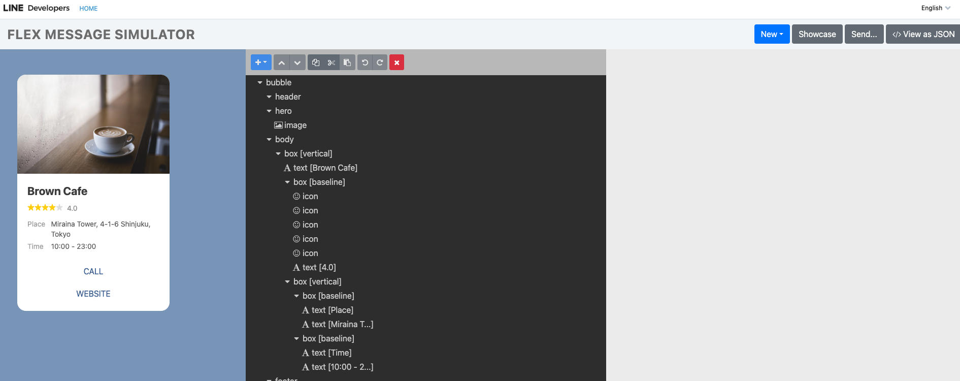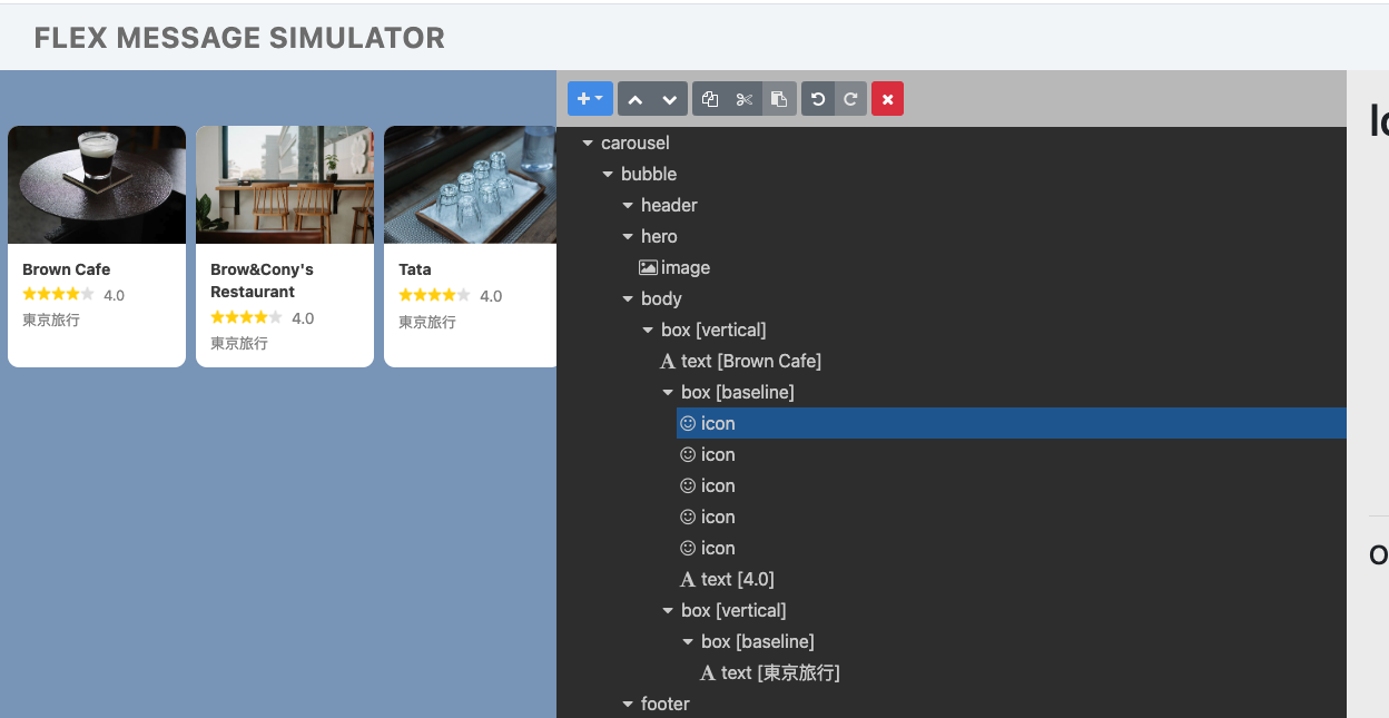 依照本次範例,我們不需要評比的星星。可以透過 FLEX Message Simulator 來直接移除(用剪刀) 。