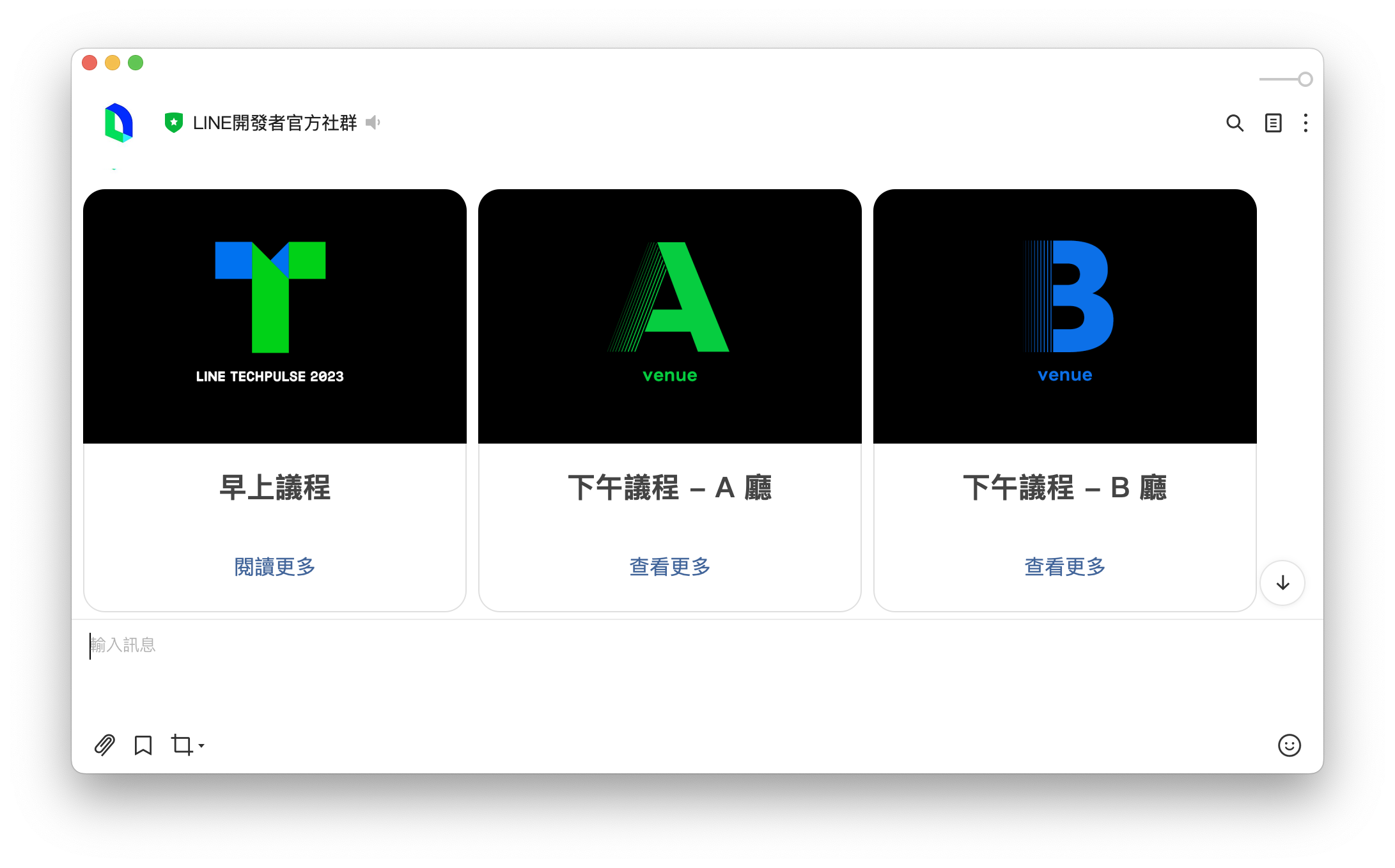 欲了解詳細內容,請至「LINE 開發者官方社群」中輸入「全部議程」